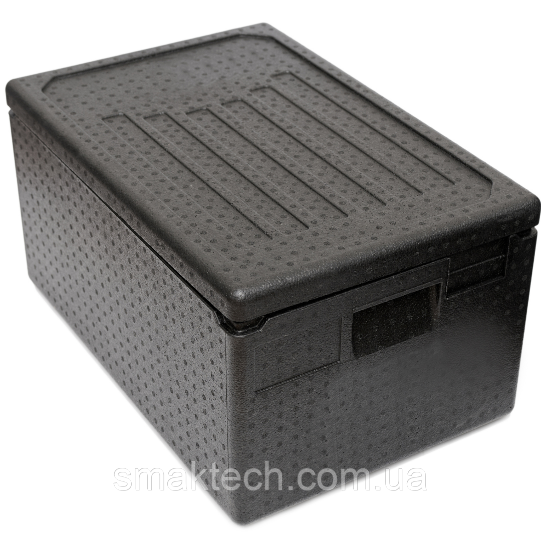 EPP-60.40.30 - високоякісний термоконтейнер для транспортування харчових продуктів. Для зручності можна використовувати гастроємності, обираючи їх розмір, матеріал і кількість окремо. Контейнер зроблений зі спіненого поліпропілену високої щільності (EPP). Це міцний, неважкий і екологічно чистий матеріал. Його легко транспортувати, навіть у заповненому вигляді, і практично неможливо розбити. EPP має високі ізоляційні властивості. Зберігає температуру продуктів, за умови, що контейнер наповненний не менше ніж на 75% і герметично закритий. Легкий у догляді. При зберіганні і транспортуванні є можливість штабелювання, що економить робочий простір. Особливістю моделі EPP-60.40.30 є відкидна кришка, що при потребі легко закривається і відкривається. Технічні характеристики: Колір: чорний Габаритні розміри: 490x690x369 мм Об'єм: 81 л Вага: 1,6 кг