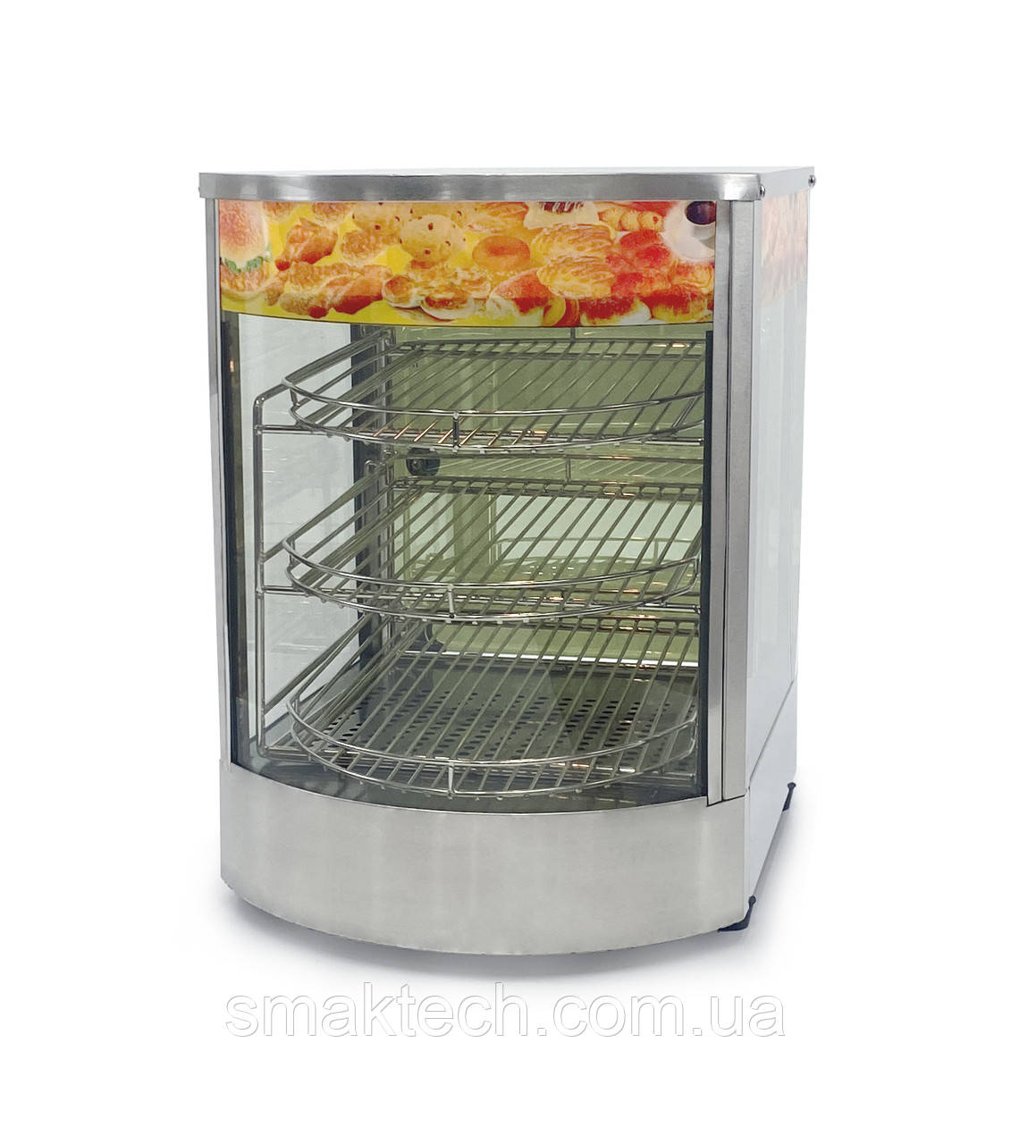 Наприклад, для викладання вафель, кондитерських виробів, булочок, пиріжків також можна використовувати як вітрину для курей-гриль.